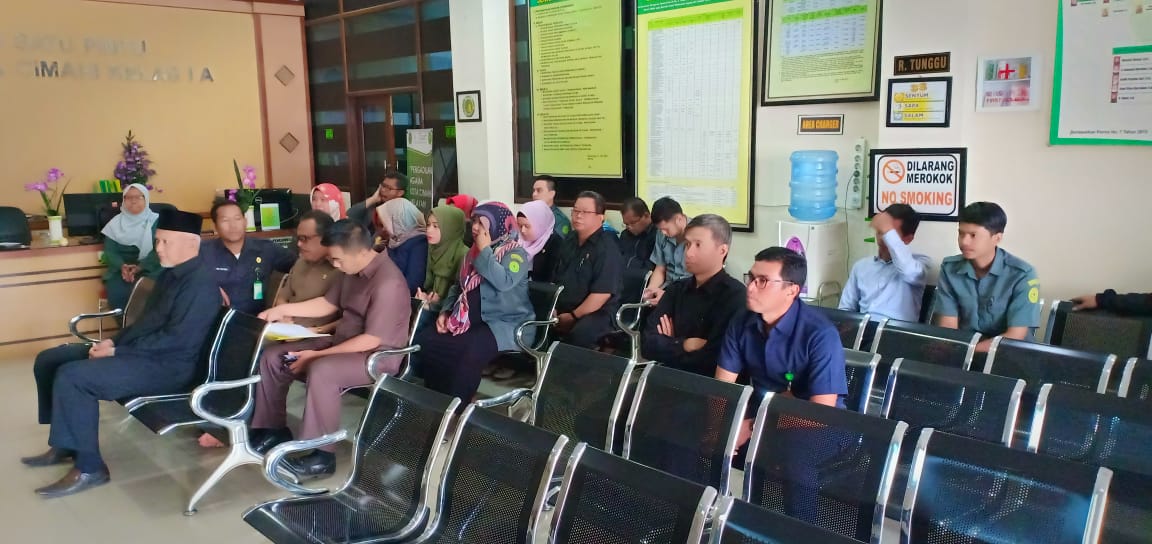 Cimahi - Senin tanggal 16 Desember 2019. Dalam rangka melaksanakan hasil Rakerda Pengadilan Tinggi Agama Jawa Barat, Pengadilan Agama Kota Cimahi berkomitmen untuk melaksanakan kegiatan apel pagi setiap hari senin sebelum jam layanan kantor, yang bertugas menjadi Pembina apel adalah Ketua. Dalam apel pagi Senin tadi, Ketua Pengadilan Agama Kota Cimahi, Dr. H. Dudung, S.H., M.H. berkesempatan menjadi Pembina apel. Dalam amanatnya Ketua mengajak seluruh keluarga besar Pengadilan Agama Kota Cimahi untuk mensukseskan pembangunan Zona Integritas dan juga tak lupa tetap fokus dengan tupoksi masing-masing.