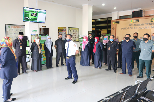 CIMAHI, Senin 28 September 2020, diruang tunggu pelayanan PTSP Pengadilan Agama Kota Cimahi, dilaksanakan kegiatan apel pagi rutin sebelum melaksanakan kegiatan dan memberikan layanan terbaik untuk masyarakat, yang menjadi pembina apel pagi ini adalah Dra. Hj. Indah Nirmala, M.H. ( Hakim Pengadilan Agama Kota Cimahi) yang diikuti oleh seluruh Pegawai. dalam apel kali ini pembina menyampaikan agar seluruh aparatur pengadilan bisa memberikan pelayanan terbaiknya, mulai dengan menjaga kebersihan diseluruh area pelayanan agar masyarkat merasa nyaman datang dan menunggu antrian sebelum mendapatkan layanan, begitupun dengan seluruh petugas agas senantiasa menerapkan budaya kerja 5R (Ringkas, Rapi, Resik, Rawat dan Rajin) serta 3S (Senyum, Sapa dan Salam). Selanjutnya apel ditutup dengan doa bersama.