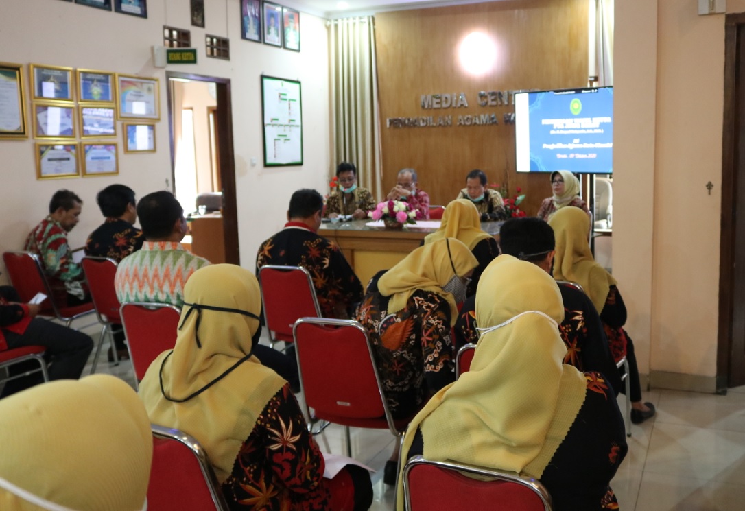 Kota Cimahi, Jum’at 9 Oktober 2020 Wakil Ketua Pengadilan Tinggi Agama Jawa Barat Bapak Dr. H. Empud Mahpudin S.H., M.H. beserta Hakim Tinggi bapak Drs. H. Sudirman Cik Ani, S.H., M.H. dan Kepala Bagian Perencanaan dan Kepegawaian bapak Nurmansyah, S.Ag. melakukan kunjungan sekaligus pembinaan ke Pengadilan Agama Kota Cimahi. Kedatangan beliau disambut hangat oleh Ketua Pengadilan Agama Kota Cimahi bapak Drs. Kausar Anhar, S.H. beserta Wakil Ketua ibu Dra. Orba Susilawati, M.H.I. setelah melakukan kunjungan, beliau melakukan pembinaan ke seluruh pegawai yang bertempat di Ruang Media Center Pengadilan Agama Kota Cimahi.