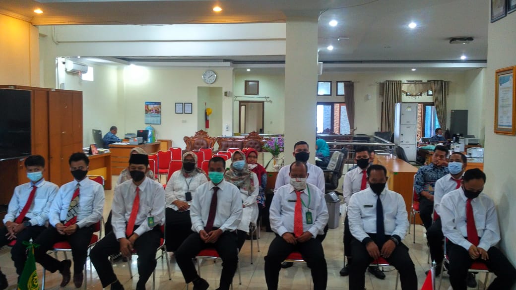 Cimahi - Jumat, 15 Januari 2021. Bertempat di Media Center Pengadilan Agama Kota Cimahi, seluruh Tenaga kontrak Pengadilan Agama Kota Cimahi Kelas IA berkumpul untuk mengikuti rapat koordinasi penandatanganan kontrak kerja tahun 2021. Acara ini dipimpin oleh Wakil Ketua Pengadilan Agama Kota Cimahi Kelas IA Dra. Orba Susilawati, M.H.I, dan dihadiri oleh Hakim, Panitera dan Sekretaris.