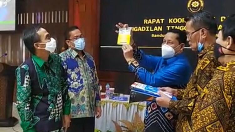 Kemudian pada sesi selanjutnya, acara dilanjutkan dengan penyerahan 5 buku, yang diserahkan oleh Ketua Pengadilan Tinggi Agama Jawa Barat kepada Sekretaris Direktorat Badan Peradilan Agama selaku wakil dari Ditjen Badilag. Lima buku tersebut diantaranya yaitu: