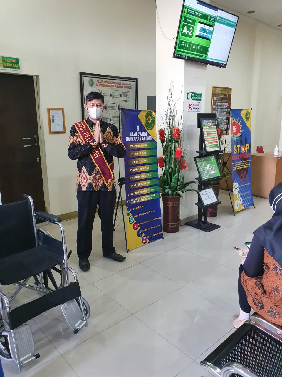 Bagi Masyarakat atau Para Pencari Keadilan yang datang berkunjung ke Pengadilan Agama Kota Cimahi tidak perlu khawatir akan kebingungan dengan prosedur, persyaratan, biaya, jangka waktu penyelesaian atau ingin menanyakan informasi apapun terkait pelayanan di Pengadilan Agama Kota Cimahi Kelas IA, karena sekarang ada petugas duta layanan dan informasi yang akan melayani para pemohon termasuk bagi kelompok difabel dan lansia.