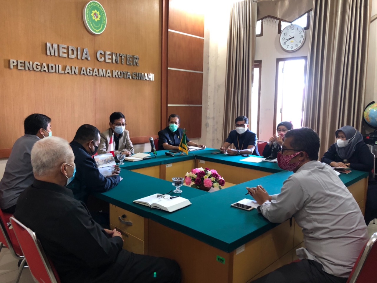Pada rabu, 21 Juli 2021 telah diadakan rapat evaluasi PPKM yang dilaksanakan di Media Center Pengadilan Agama Kota Cimahi. Rapat ini dihadiri oleh Bapak Ketua Drs. Kausar Anhar, S.H., Bapak Hakim Drs. H. Anung Saputra, S.H., M.H., Bapak Panitera Drs. Mochamad Jalaludin, Bapak Sekretaris Ita Sasmita, S.H., M.H., para panitera muda dan para kasubbag. Rapat kali ini membahas mengenai evaluasi PPKM darurat yang telah dijalankan selama dua minggu terakhir dan rencana tindak lanjut mengenai perpanjangan PPKM.